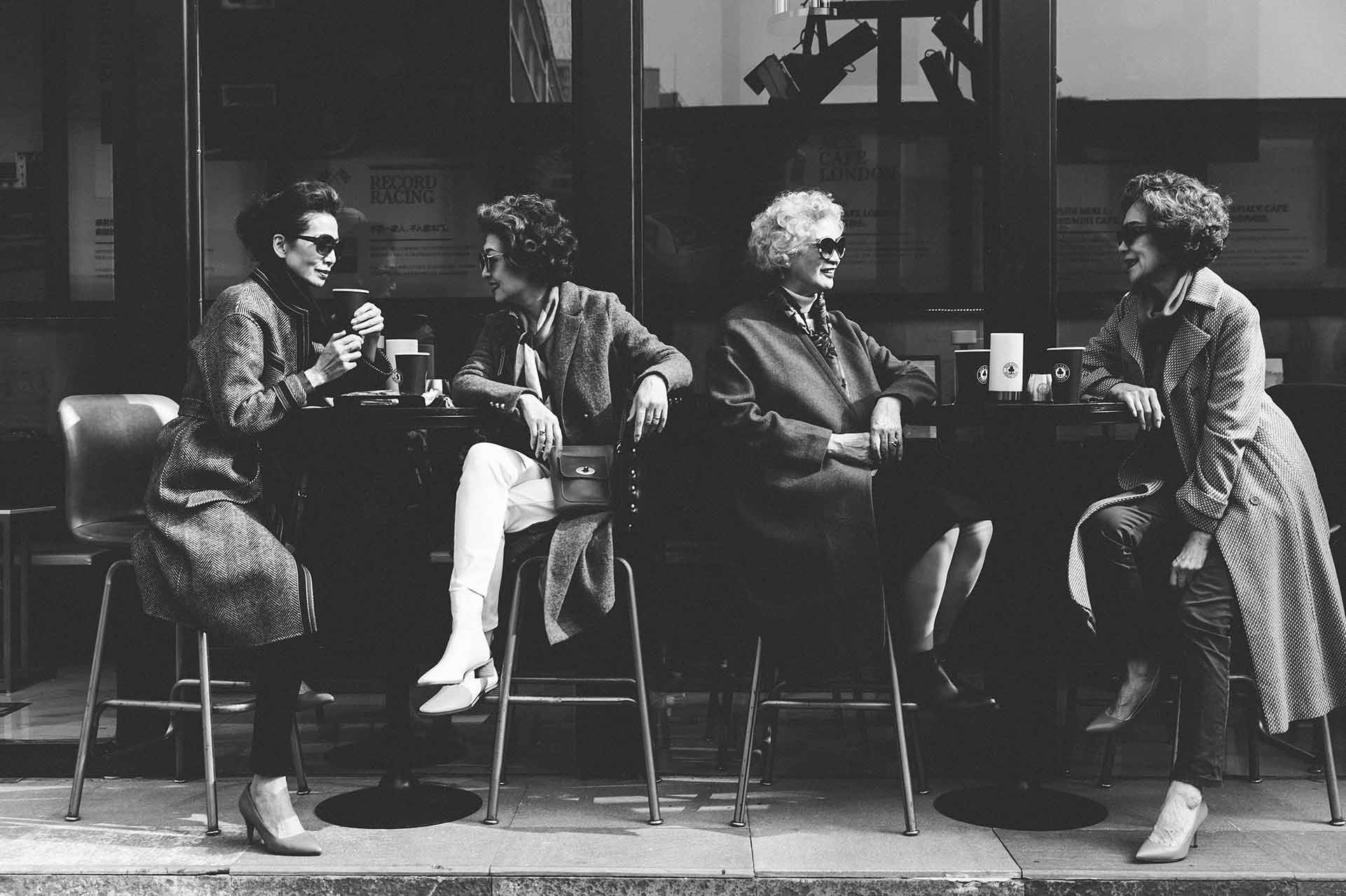 “Glamma Beijing” (from left to right: Lin Wei, Sun Yang, Wang Nianwen, Wang Xinghuo) outside a cafe in the upscale commercial district of Sanlitun, Beijing. (Photo provided by interviewees)