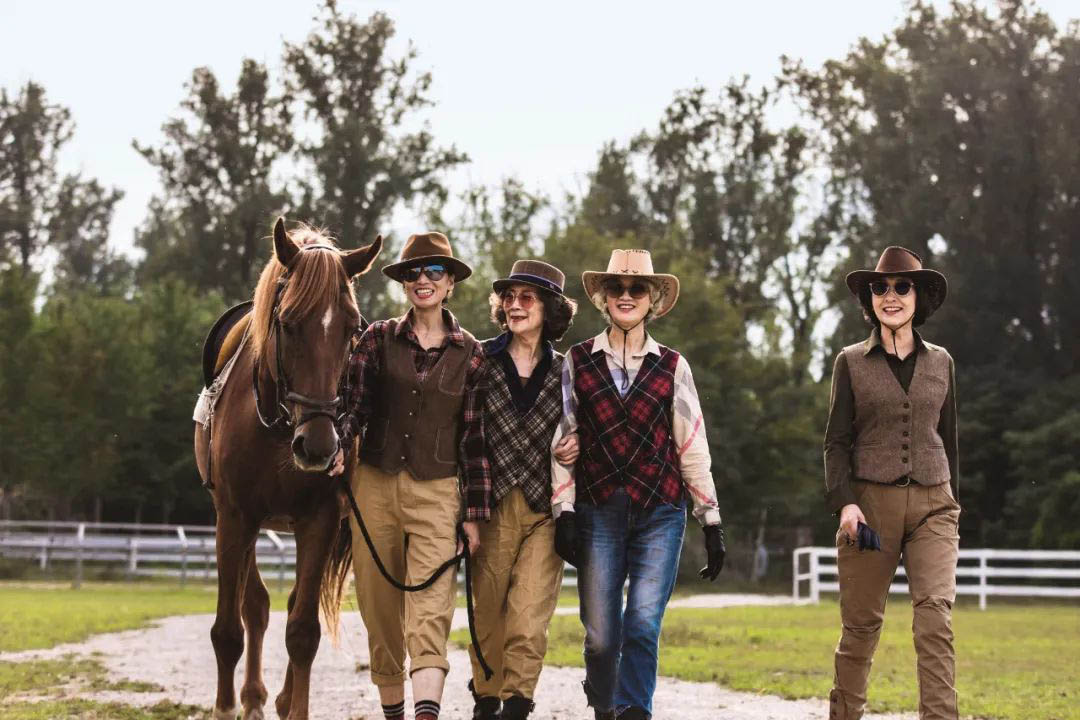 “Glamma Beijing” (from left to right: Lin Wei, Wang Xinghuo, Wang Nianwen, and Sun Yang) at a horse club outside Beijing in Sept. 2019. (Photo provided by interviewees)