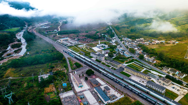 Aerial photo shows Qinling Railway Station in Huangniupu town, Fengxian county, Baoji city, northwest China’s Shaanxi Province. (Photo courtesy of China Railway Xi'an Bureau Group Co., Ltd.)