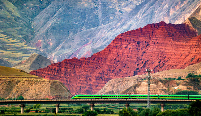 The 1,786-km Lanzhou-Urumqi high-speed railway links Gansu's Lanzhou and Urumqi, northwest China's Xinjiang Uygur Autonomous Region. It is called China's most beautiful high-speed railway by passengers. They can enjoy the picturesque scenery of the Danxia landform in Lanzhou along the route.
