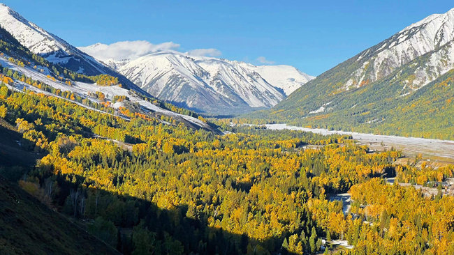 Photo shows a picturesque scenery of the Hemu scenic area of Kanas in northwest China's Xinjiang Uygur Autonomous Region. (Photo courtesy of China Railway Urumqi Bureau Group Co., Ltd.)