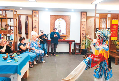 Foreign tourists enjoy a Hui Opera performance in Huangshan, east China's Anhui Province. (Photo/Shu Shaofei)