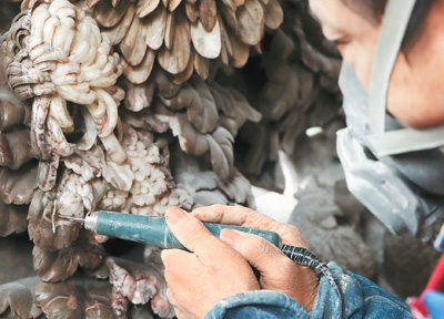 Before carving, one must locate the "flowers" in the stone. "It takes a seasoned artisan to skillfully reveal the flowers through touch and feel, all the while maintaining the integrity of the 'flower pattern,'" Chen said.