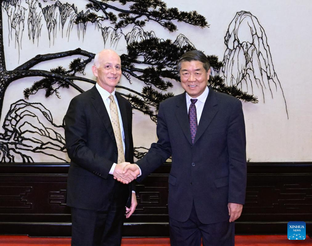 Chinese Vice Premier He Lifeng, also a member of the Political Bureau of the Communist Party of China Central Committee, meets with a U.S. congressional delegation led by Representative Adam Smith in Beijing, capital of China, Sept. 22, 2025. (Xinhua/Shen Hong)