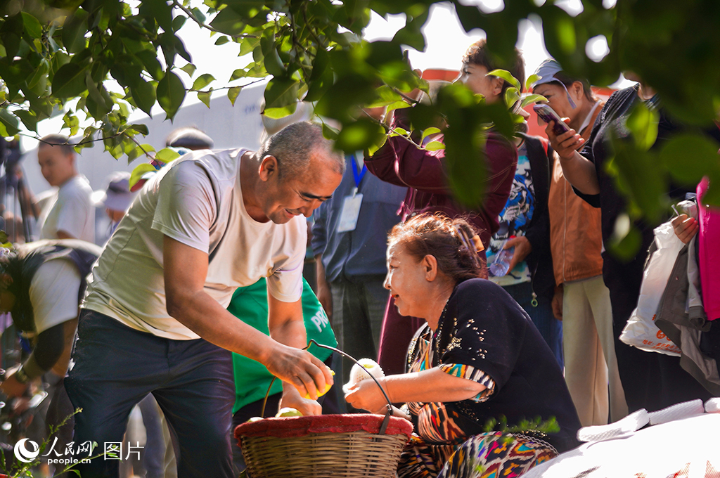 Farmers pick pears in Awat township of Korla city, northwest China's Xinjiang Uygur Autonomous Region, on Sept. 21, 2025. (People's Daily Online/Li Xinyang)