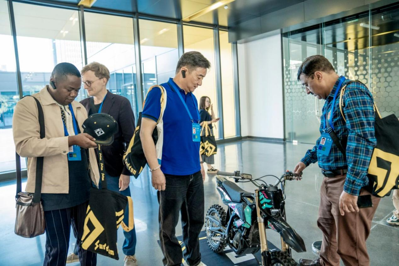 At Qiulong Technology, a manufacturer of electric off-road motorcycles with an annual capacity of 80,000 units and sales in nearly 50 countries, foreign visitors toured the showroom and racetrack. They watched a test run of the high-tech models.