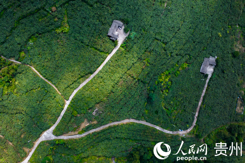 Aerial photo shows a kiwi fruit base covering 12,000 mu in Pingtan village, Gubao town, Xiuwen county, Guiyang, southwest China's Guizhou Province. (People's Daily Online/Tu Min)