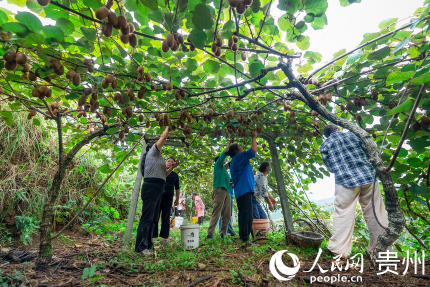 The harvest season began on Sept. 21 for 12,000 mu (800 hectares) of kiwi fruit orchards in Pingtan village, Gubao town, Xiuwen county, Guiyang, southwest China's Guizhou Province.