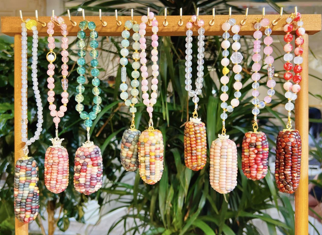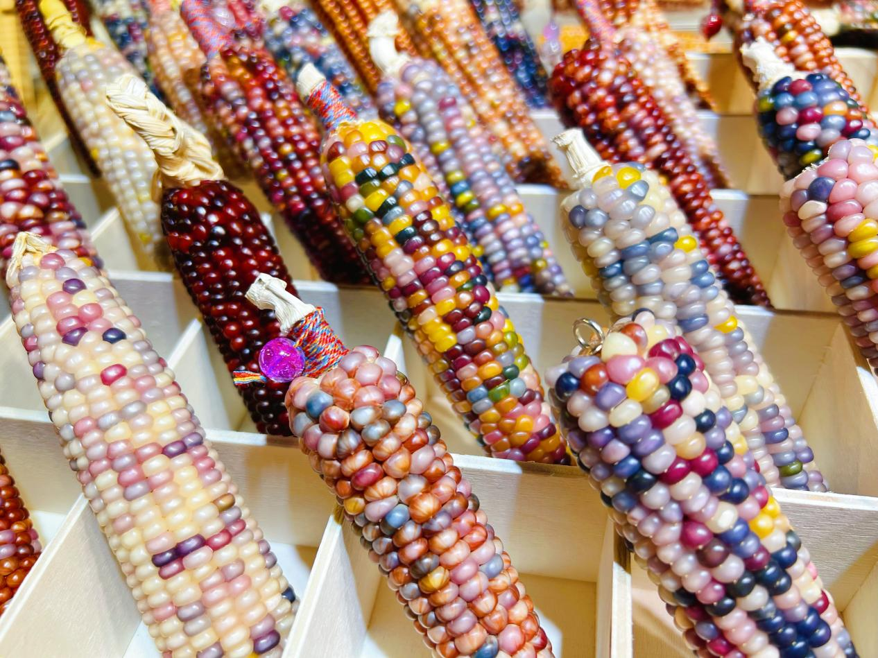 After being naturally dried, carefully selected and creatively crafted, the colorful corn takes on many new forms. Mounted on wooden bases, it becomes a decorative ornament. Single kernels, drilled and paired with Yunnan silver, are made into bracelets, keychains, pendants, wall art and more.