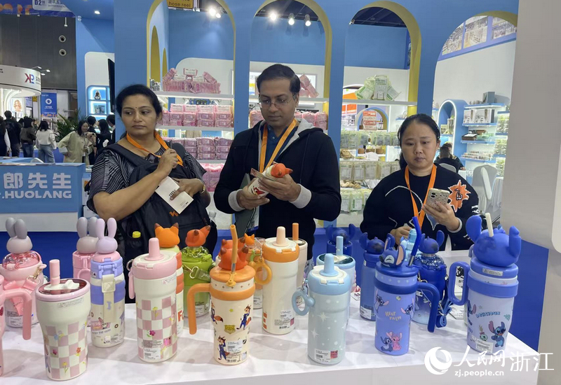 Foreign buyers visit the booth of Yiwu Meicimei Ornaments Co., Ltd. at the 31st China Yiwu International Commodities Fair-Export Goods Exhibition in Yiwu, east China's Zhejiang Province. (People's Daily Online/Wang Liwei)