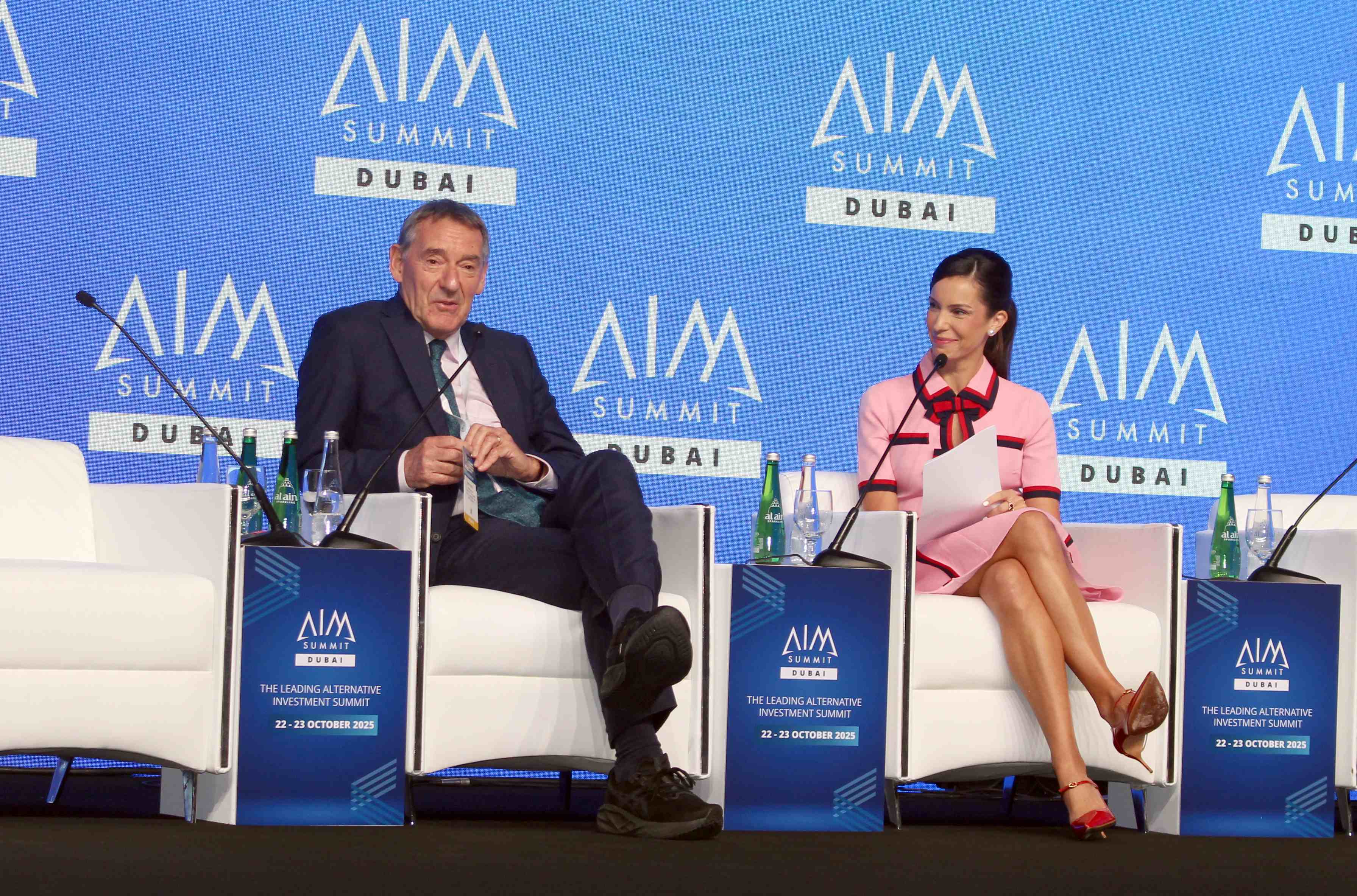 Jim O'Neill is interviewed during the AIM Summit Dubai 2025 on Oct. 22, 2025. (People's Daily /Gerard Al-Fil)