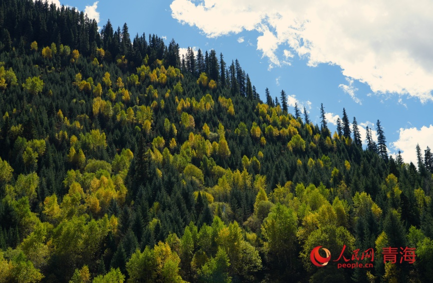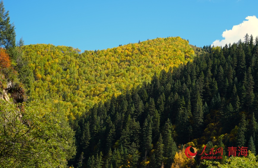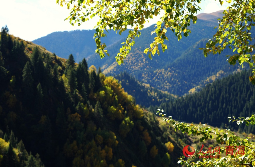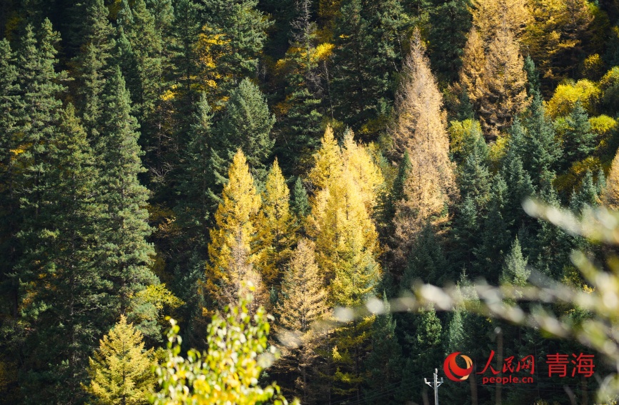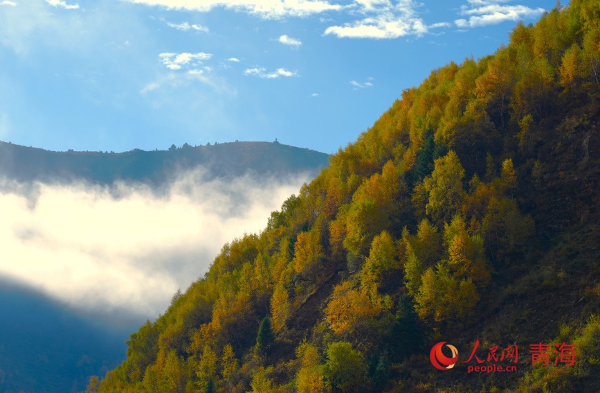 Photo shows an autumn view of Wangrou Forest Farm in Padma county, northwest China's Qinghai Province. (People's Daily Online/Gan Haiqiong)