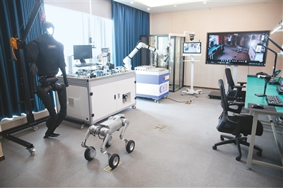 A robotics lab at Chongzhiling, an AI-powered pet health management platform under EX Future Technology Group, displays humanoid robots, robotic arms, AI workstations and monitoring screens. (Photo courtesy of the interviewee)