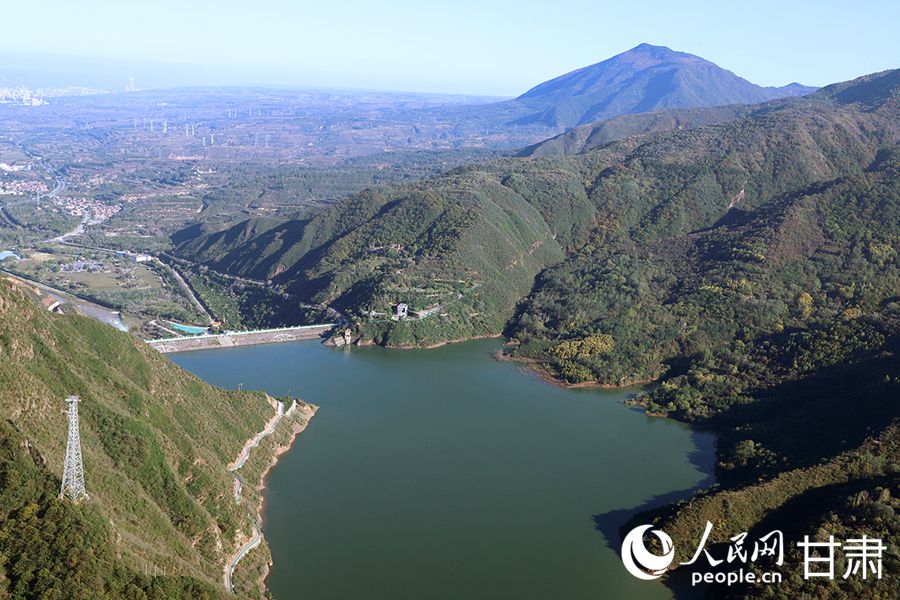 Photo shows an aerial autumn view of Tanzheng Lake in the Kongtong Mountain scenic area in Pingliang city, northwest China's Gansu Province. (People's Daily Online/Mi Yuan)