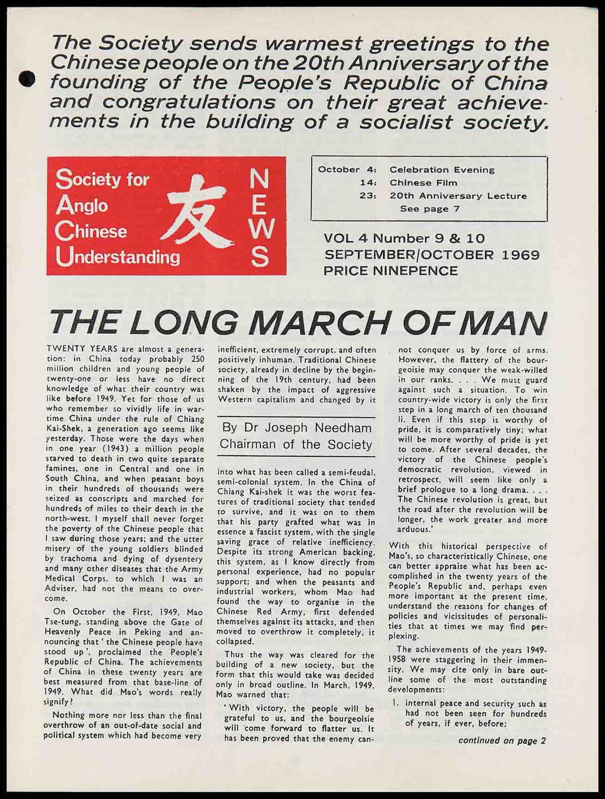 On Saturday, May 15, 1965, Joseph Needham addressed a packed assembly hall in Church House Westminster, central London, to announce the birth of "an organization for fostering friendship and mutual understanding between the British and the Chinese people".