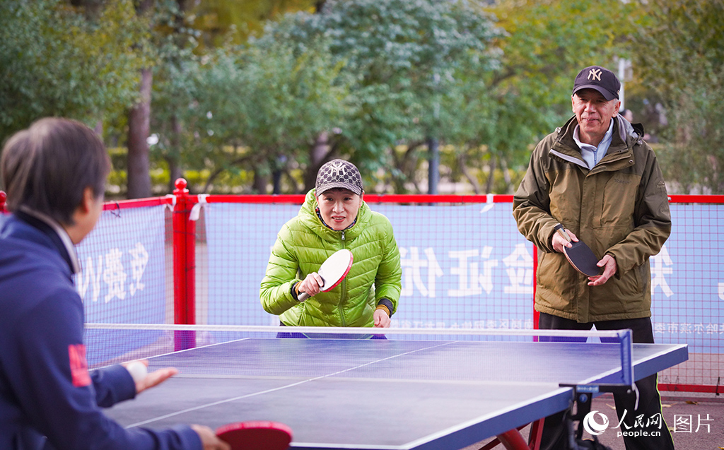 Seniors play table tennis and stay active at Children's Park of Harbin, northeast China's Heilongjiang Province on Oct. 22, 2025. (People's Daily Online/Su Jinggang)