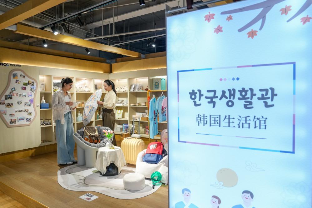 Customers select products of South Korea at a store in Yancheng, east China's Jiangsu Province, Oct. 16, 2025. (Xinhua/Li Bo)