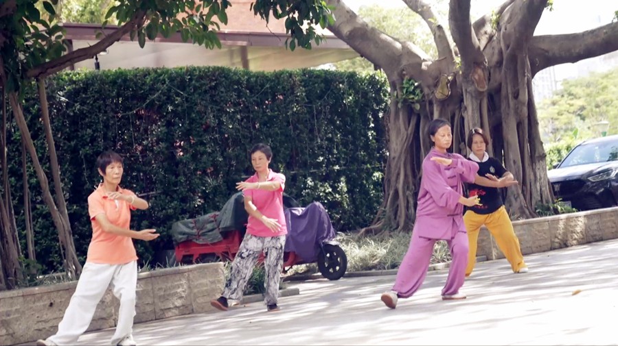 Photo shows retirees practicing Tai Chi in a park in Guangzhou, south China's Guangdong Province, Sept. 8, 2025. (People's Daily Online/Zhang Rong)