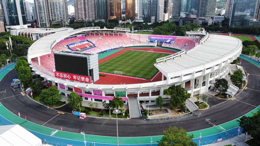 An aerial drone photo shows Guangzhou's Tianhe Sports Center. (Photo provided to People's Daily Online by the Guangzhou Executive Committee of the 15th National Games, the 12th National Games for Persons with Disabilities and the 9th National Special Olympic Games)