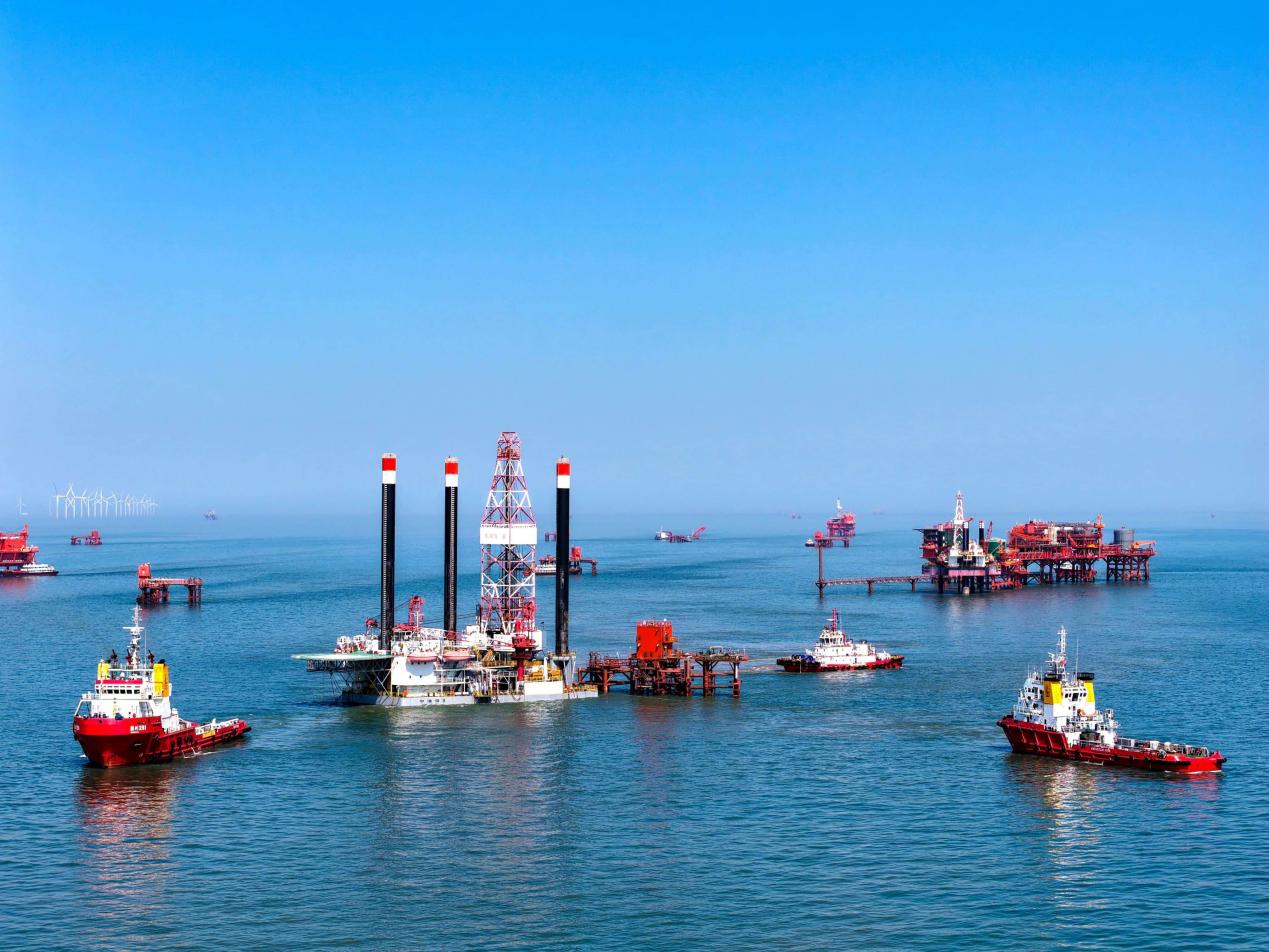 Photo shows an offshore oil and gas drilling platform in the waters near Dongying, east China's Shandong province. (Photo/Zhang Can)