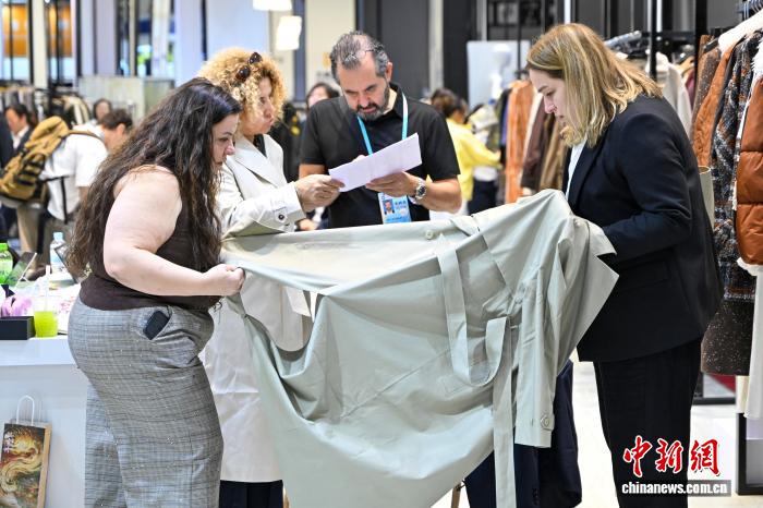 Foreign buyers select products in the menswear and womenswear exhibition area during the third phase of the 138th Canton Fair in Guangzhou, south China's Guangdong Province, Nov. 1, 2025. (China News Service/Chen Jimin)