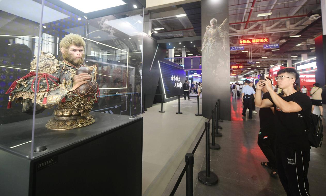 A model of Wukong in the Chinese AAA video game Black Myth: Wukong is exhibited at the 21st China International Cartoon and Animation Festival held in Hangzhou, east China's Zhejiang province, May 29, 2025. (Photo/Long Wei)