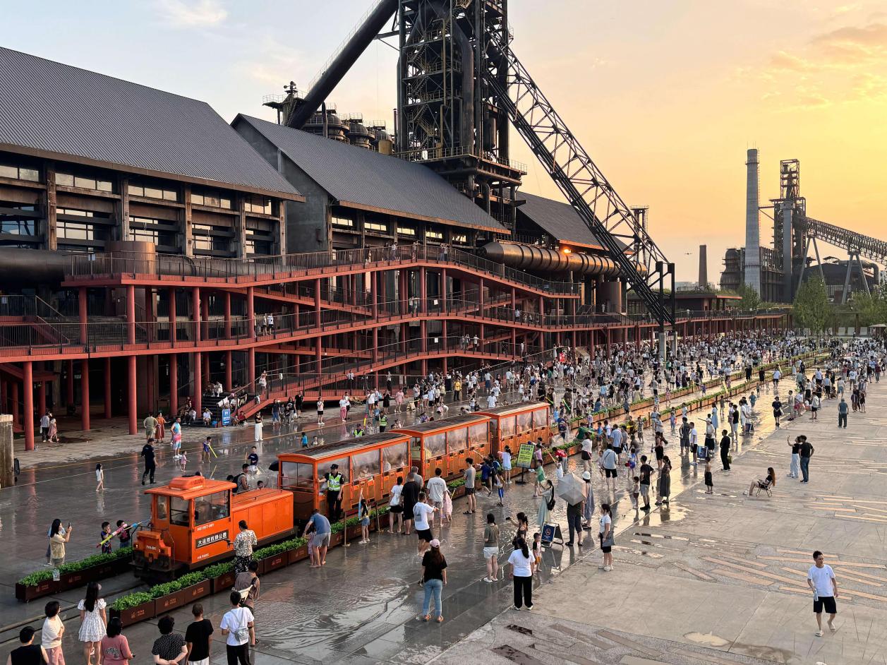 Citizens visit a park transformed from the industrial remains of a steel mill in Hangzhou, east China's Zhejiang province, July 13, 2025. (Photo/Xu Genzhu)