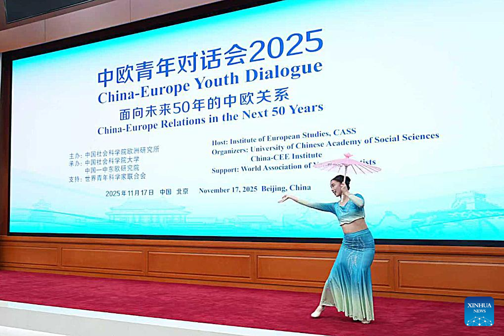 The China-Europe Youth Dialogue 2025 is held in Beijing, capital of China, on Nov. 17, 2025. The China-Europe Youth Dialogue 2025 was held here on Monday. Hosted by the Institute of European Studies of the Chinese Academy of Social Sciences, the conference has brought together 61 Gen-Z representatives from 30 European countries and about 60 students and young scholars from China -- who are exploring the theme of "China-Europe Relations in the Next 50 Years." (Xinhua/Zhang Yuwei)