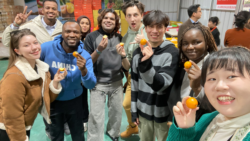 Foreign students visit a kumquat processing center in Rong'an county during a winter field trip organized by the International Students Office at Beijing Foreign Studies University from Jan. 11 to 16, 2025. (Photo provided to People's Daily Online)
