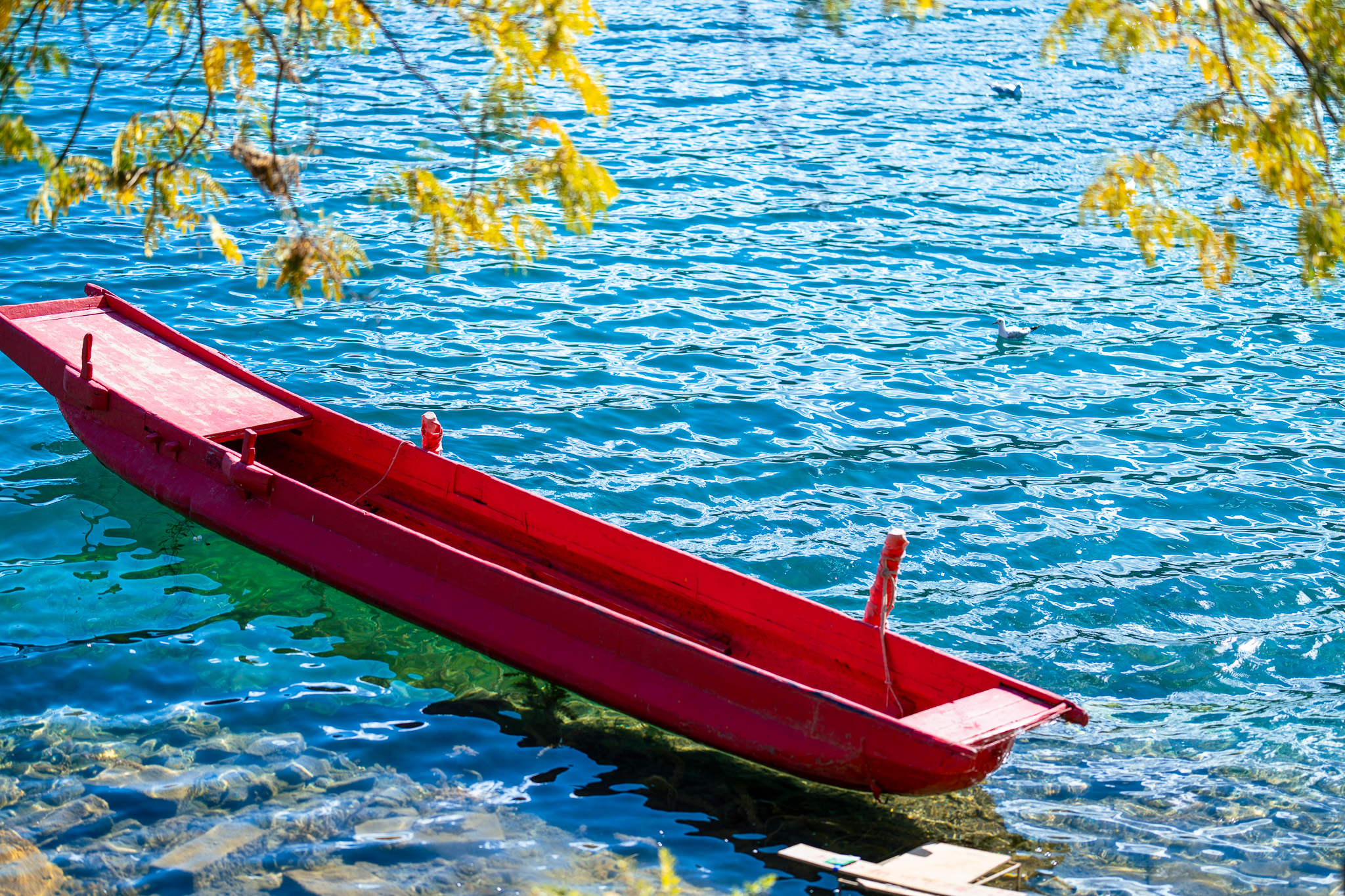 Photo shows a boat on Lugu Lake in Ninglang Yi Autonomous County, Lijiang city, southwest China's Yunnan Province. (Photo courtesy of the Publicity Department of the Communist Party of China Lijiang Municipal Committee)