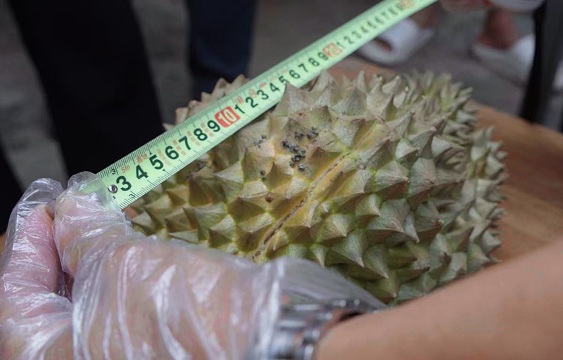 Photo shows a homegrown durian in Mengla county, Xishuangbanna Dai Autonomous Prefecture, southwest China's Yunnan Province. (Photo courtesy of the publicity department of the Communist Party of China Xishuangbanna Dai Autonomous Prefecture committee)