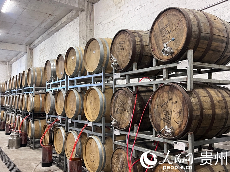 Oak barrels storing craft beer are neatly arranged at the warehouse of TripSmith, a craft brewery in Guiyang, southwest China's Guizhou Province. (People's Daily Online/Chen Jiequan)