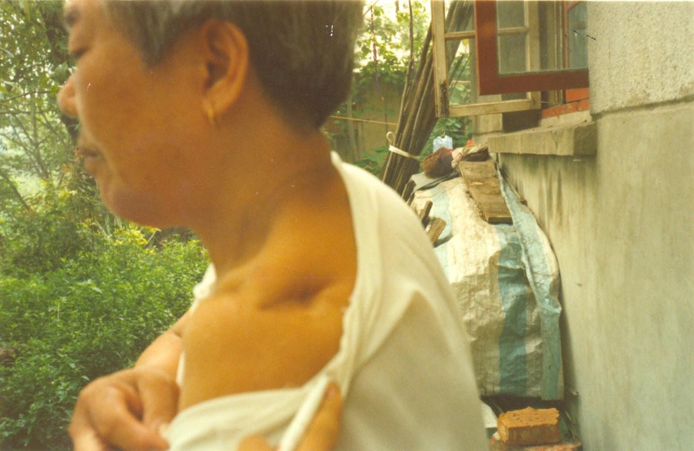 I was only 11 years old. I ran out and saw my parents lying on the ground. The Japanese soldiers shot at me and hit me in my shoulder blade. The scar can still be seen today. I fell to the ground bleeding and losing consciousness.