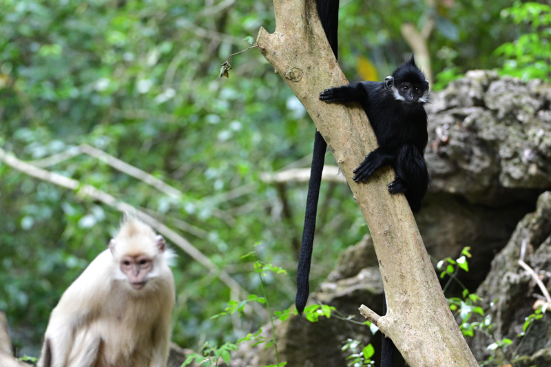 Photo shows Francois' leaf monkeys in Daxin county, south China's Guangxi Zhuang Autonomous Region. (Photo/Huang Wenqiang)