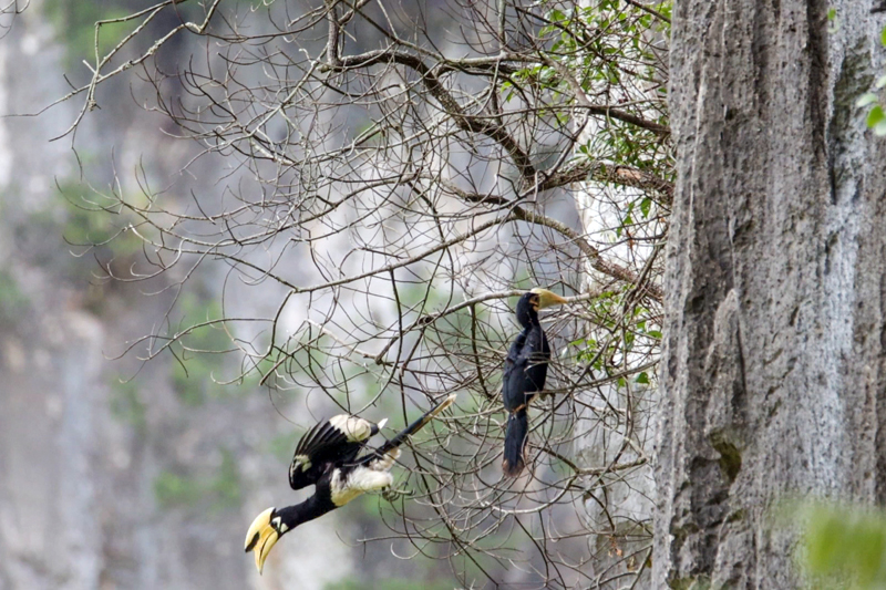 Photo shows lesser pied hornbills in Daxin county, south China's Guangxi Zhuang Autonomous Region. (Photo/Nong Wei)