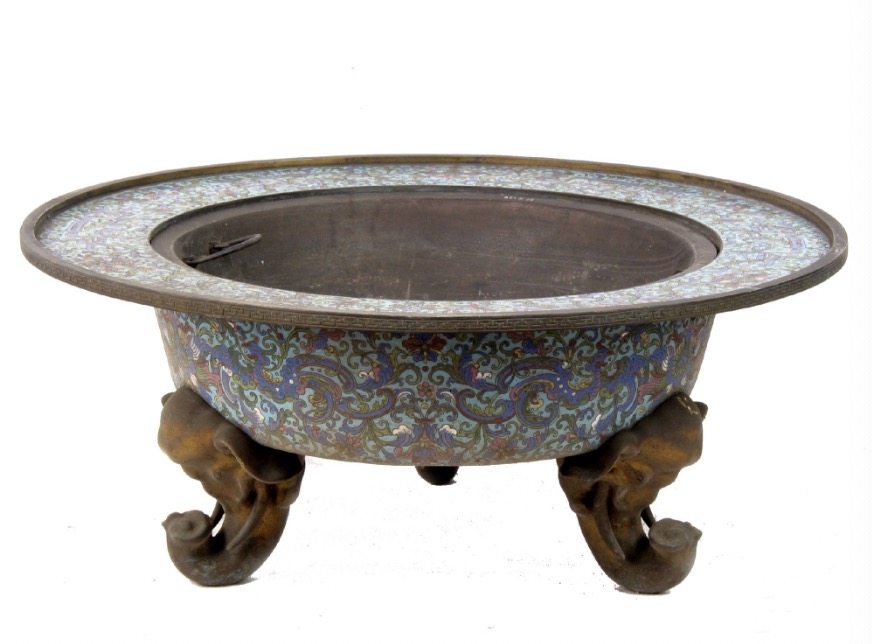 Cloisonné Tripod Brazier with Kui Dragon and Phoenix Motifs (Screenshot from the Shenyang Imperial Palace Museum official website)