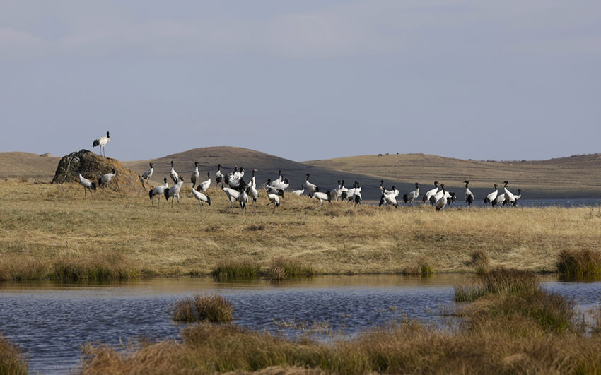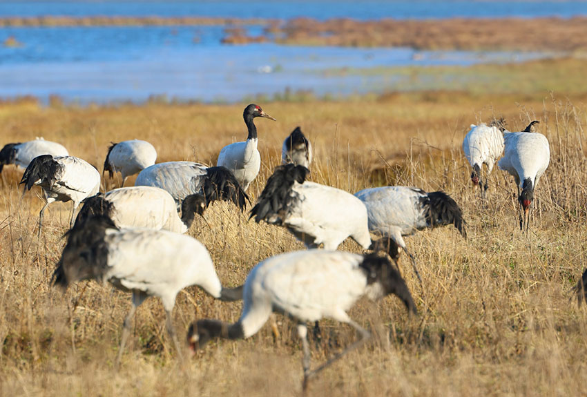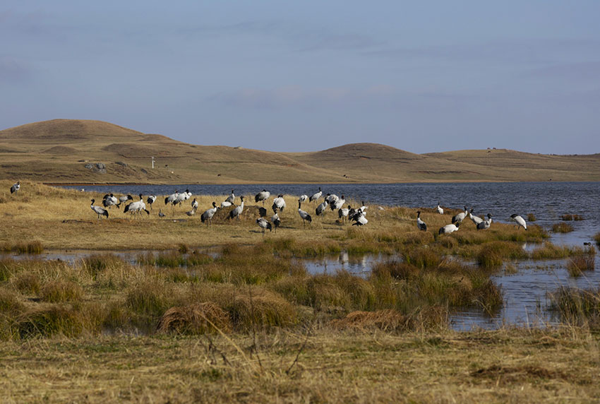 Photo shows black-necked cranes at the Yunnan Dashanbao National Nature Reserve for Black-necked Cranes in Zhaoyang district, Zhaotong, southwest China's Yunnan Province. (Photo courtesy of the convergence media center of Zhaoyang district)