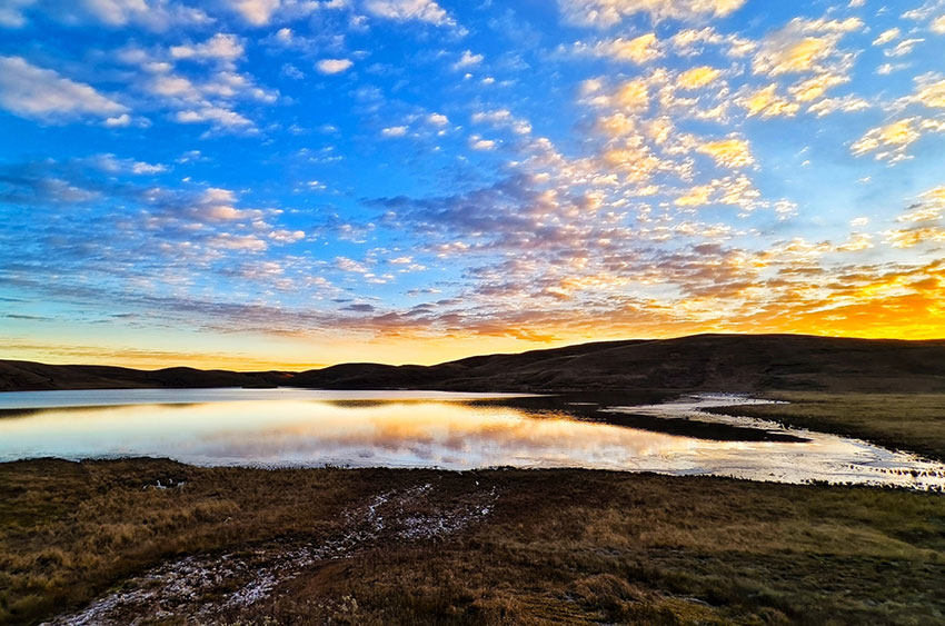 Photo shows the splendid sunset glow at the Yunnan Dashanbao National Nature Reserve for Black-necked Cranes in Zhaoyang district, Zhaotong, southwest China's Yunnan Province. (Photo courtesy of the convergence media center of Zhaoyang district)