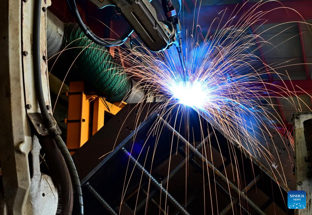 This photo taken on Dec. 28, 2025 shows an intelligent welding device working at an auto parts company in Fengnan District of Tangshan, north China's Hebei Province. In recent years, Fengnan District of Tangshan has actively pursuing opportunities to develop new quality productive forces, boosting high-quality development. (Xinhua/Yang Shiyao)