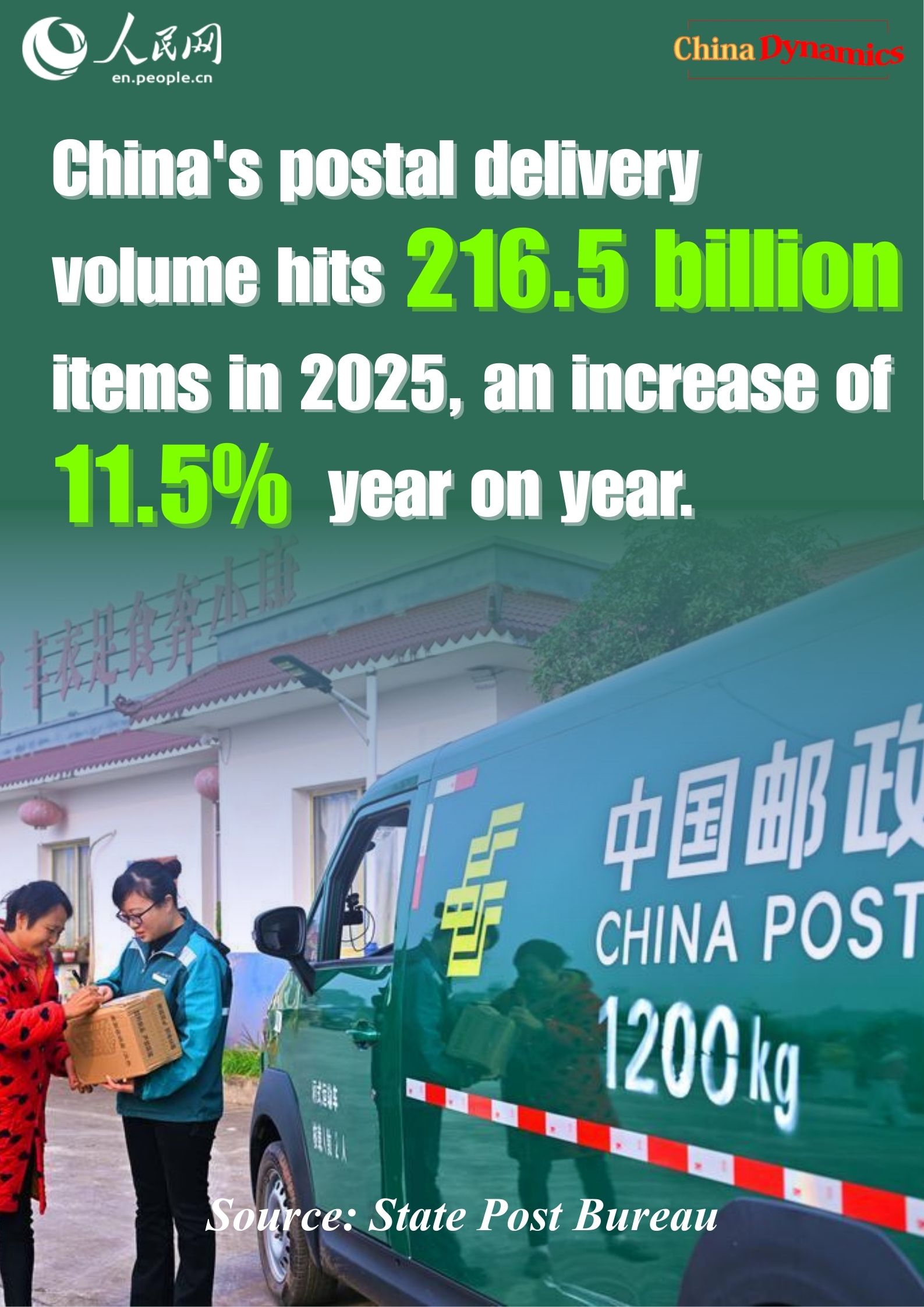 China Dynamics: China's postal delivery volume hits 216.5 billion items in 2025