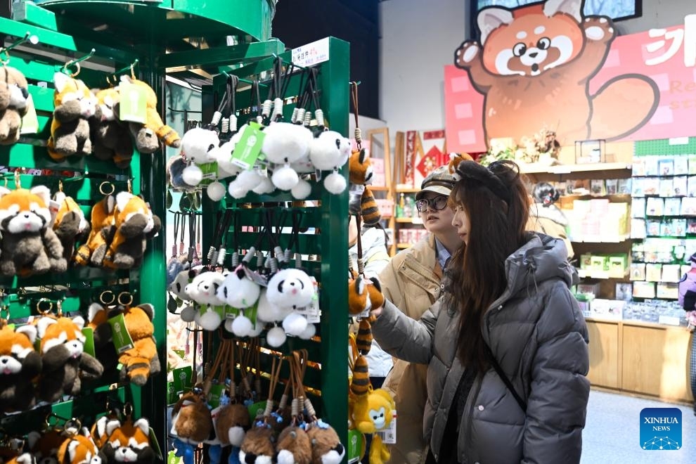 Tourists select souvenirs at Hongshan Forest Zoo in Nanjing, east China's Jiangsu Province, Jan. 3, 2026. People engaged in various leisure activities during the New Year's Day holiday. (Xinhua/Ji Chunpeng)