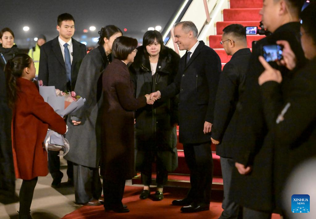 BEIJING, Jan. 14 (Xinhua) -- Canadian Prime Minister Mark Carney arrived in Beijing on Wednesday for an official visit to China through Saturday.