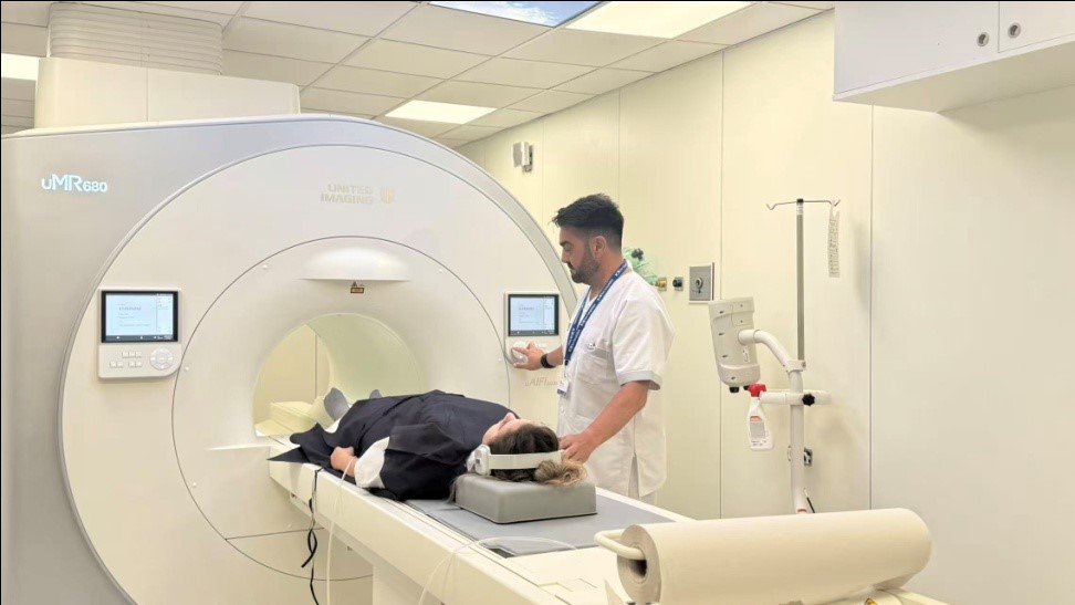 A doctor uses magnetic resonance imaging equipment developed by Chinese company United Imaging Healthcare at a hospital in Malaga, Spain. (People's Daily/Yan Huan)