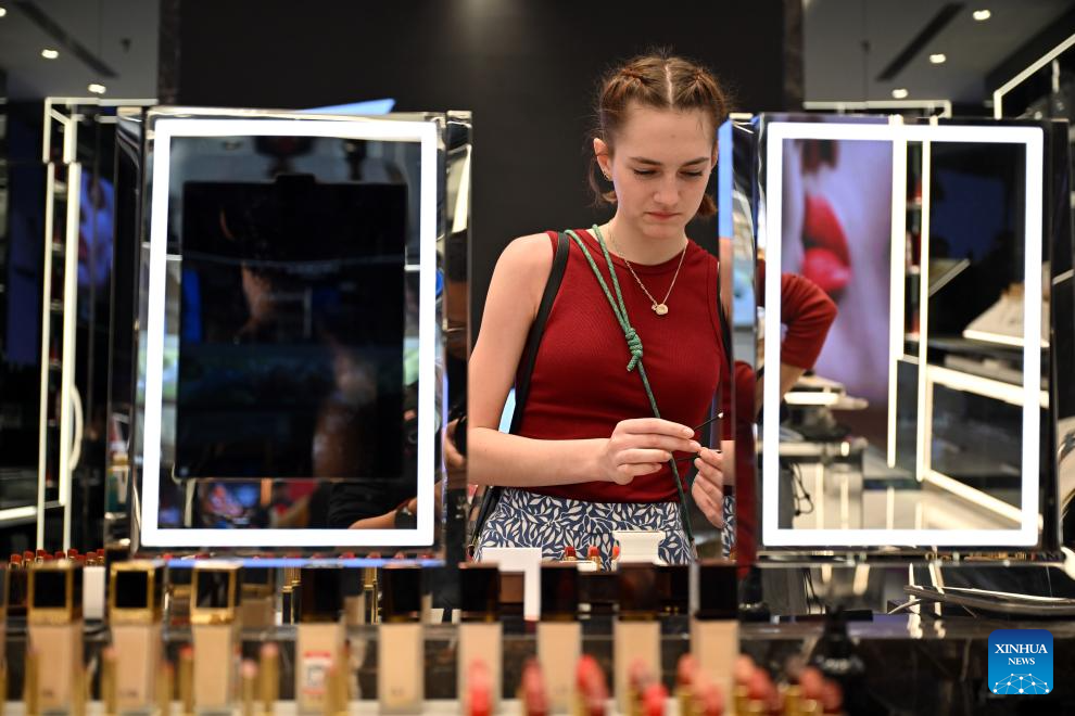 A customer shops at the Sanya International Duty Free City in Sanya, south China's Hainan Province, on Jan. 10, 2026. On Dec. 18 last year, China launched island-wide special customs operations in the Hainan Free Trade Port (FTP), allowing freer entry of overseas goods, expanding zero-tariff coverage, and introducing more business-friendly measures. One month into the island-wide special customs operations, Hainan FTP in south China has seen a sharp rise in duty-free purchases. According to Haikou Customs, from Dec. 18, 2025 to Jan. 17, 2026, the duty-free sales supervised by customs reached 4.86 billion yuan (about 693.5 million U.S. dollars), up 46.8 percent year on year, and the number of shoppers rose 30.2 percent year on year to 745,000, showing sustained strong consumption vitality. (Xinhua/Guo Cheng)