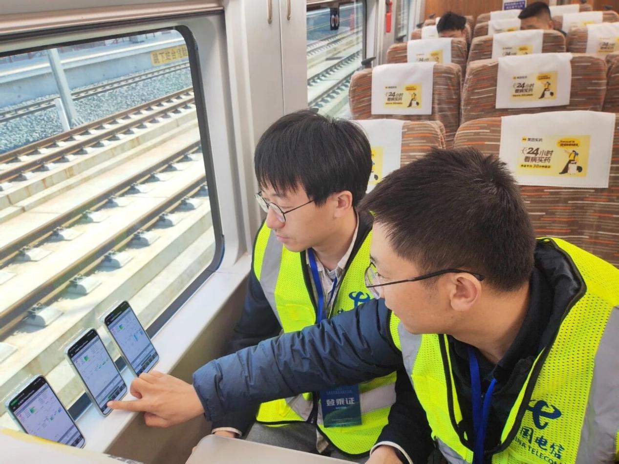 Network signals are tested on a train running on the Xi'an–Yan'an High-Speed Railway. (Photo provided by the Shaanxi branch of China Telecom)