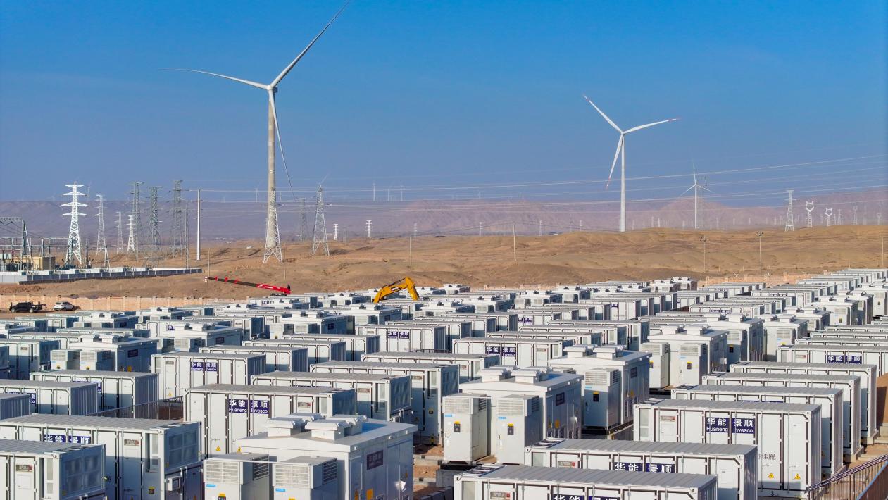 Photo shows a 300 MW/1200 MWh independent energy storage power station project in Beibutan, Gaotai county, Zhangye, northwest China's Gansu province. (Photo/Yin Xu)