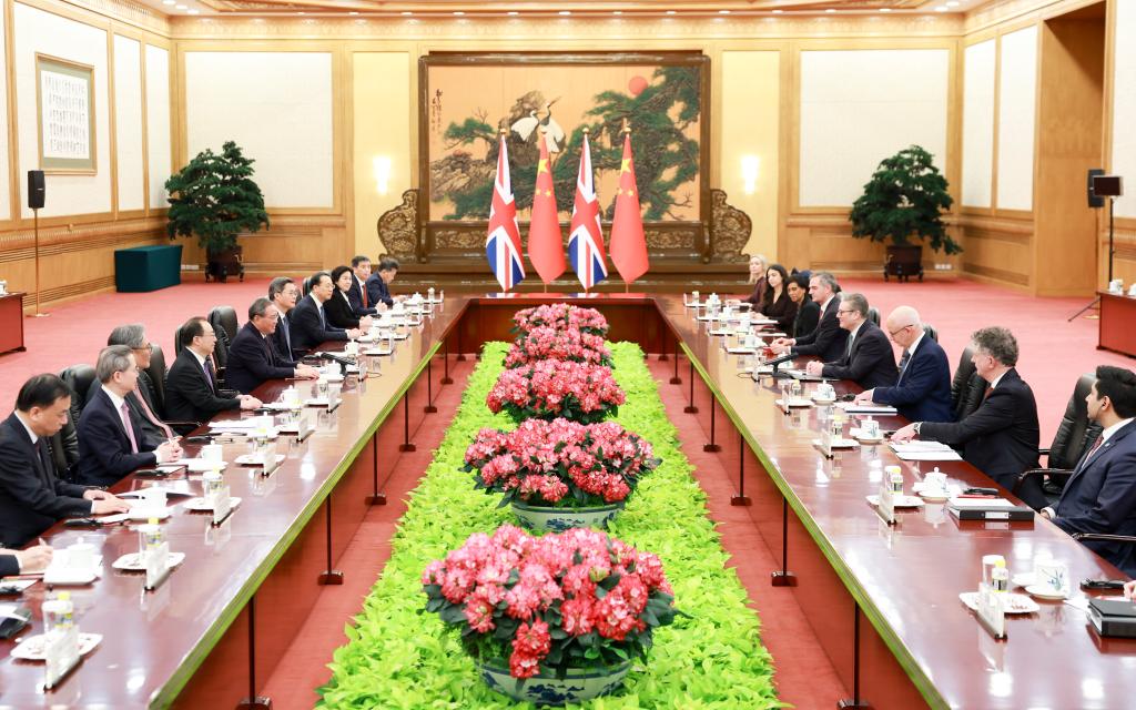 China is willing to continue to move in the same direction with Britain, respect each other's core interests and major concerns, strengthen strategic communication, consolidate the foundation of mutual trust and deepen cooperation across all fields, said Li, adding that this will not only help the two countries jointly address risks arising from changes in the international landscape and advance common development, but also inject more positive energy into global peace and stability.