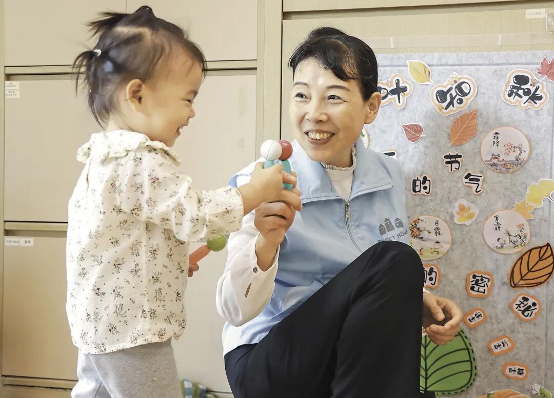 A child is taken care of at a nursery in Shahe subdistrict, Nanshan district, Shenzhen, south China's Guangdong Province. (Photo courtesy of Shenzhen Wellbeing and Wellness Group Co., Ltd.)