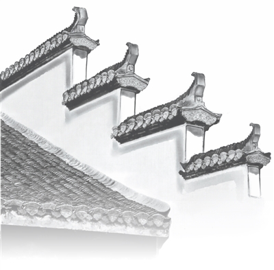 A picture of horse-head gable walls drawn by Ma Ruishan.