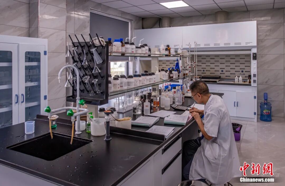 A laboratory technician works at a rare and precious metals recycling enterprise in Yongxing county, Chenzhou city, central China's Hunan Province. (Photo courtesy of the Publicity Department of the Communist Party of China Yongxing County Committee)
